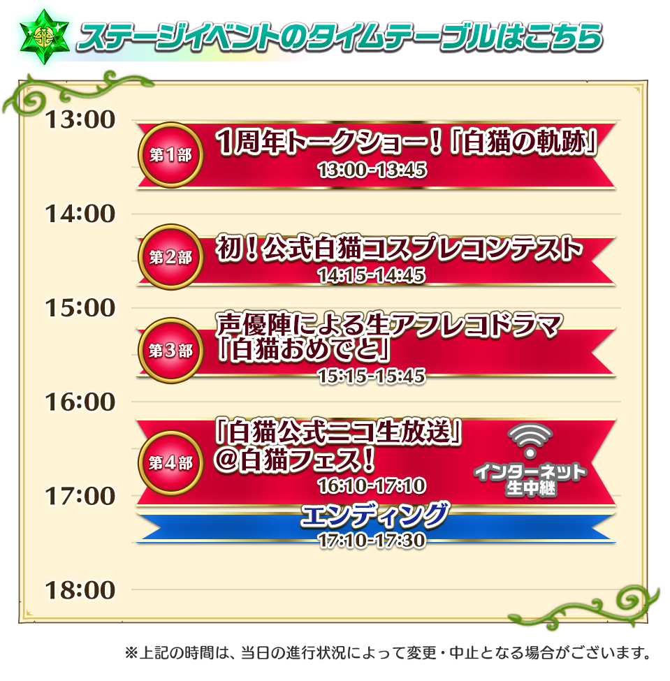 また、今回の決定に伴い全ステージイベントを「ニコニコ生放送」で中継させていただくことにいたしました。