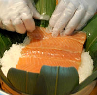 富山を代表する駅弁として、また、コロプラ通常お土産としても有名なますのすし。中でも直営店でしか買えない「伝承館ますのすし」は希少なサクラマスを使った伝統の逸品。