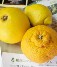 北山村でしか栽培されない幻の果実「じゃばら」。邪を払うことから名付けられたじゃばらは、独特の風味の果汁が特徴。花粉症に効果があると言われている。