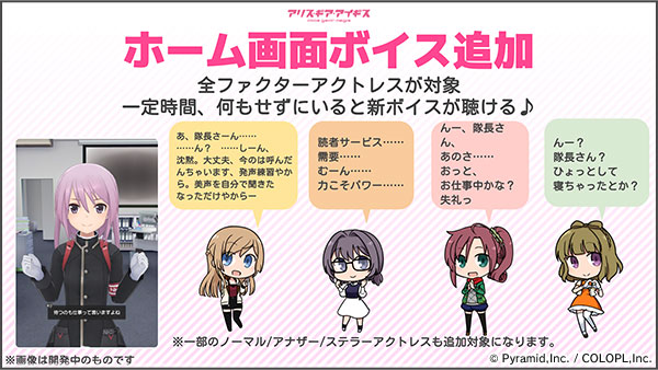 全てのファクターキャラクターに、ホーム画面での「放置ボイス」を追加!