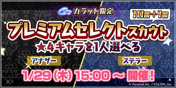 対象の★4キャラ1人を選んでスカウトできる10回+1回スカウトが開催!