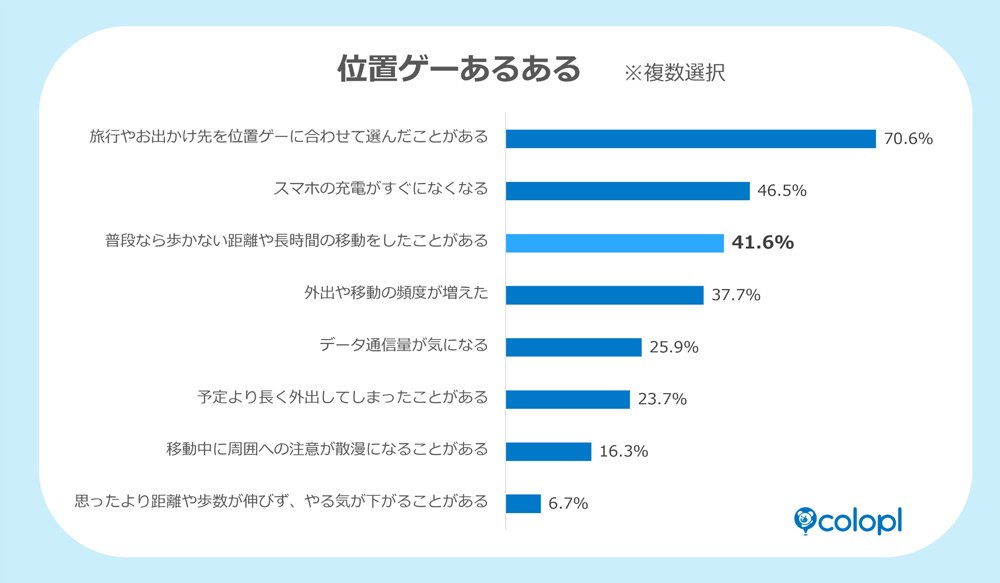 - "位置ゲー"あるある:「普段なら歩かない距離や長時間の移動をしたことがある」 41.6%