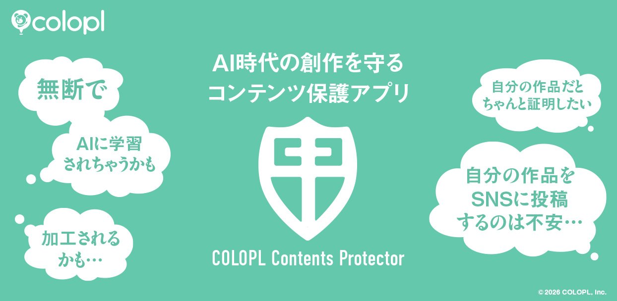 株式会社コロプラ(本社:東京都港区、代表取締役社長 上席執行役員 CEO:宮本貴志、以下「コロプラ」)は、生成AIを取り巻く環境の変化を背景に、クリエイターが安心して作品を公開できる保護ツール「COLOPL Contents Protector(コロプラ コンテンツ プロテクター、以下CCP)」を開発し、2026年3月24日(火)より無料アプリとして提供を開始しました。