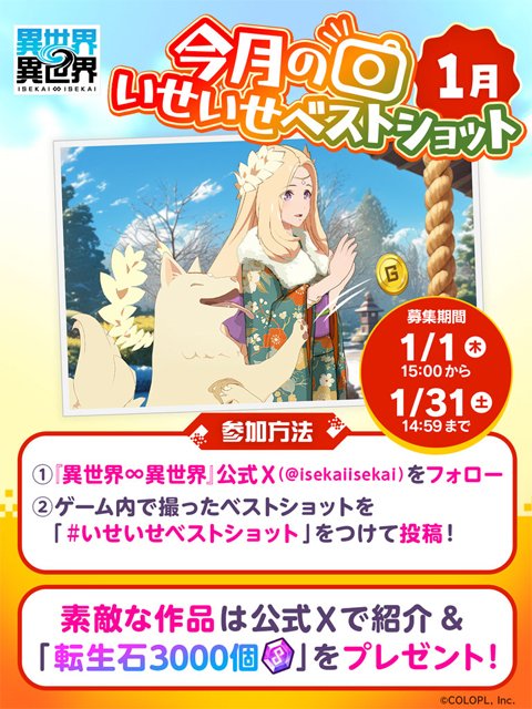 ポストしたベストショットが素敵な作品に選ばれると、公式Xで紹介&転生石3,000個をプレゼント!