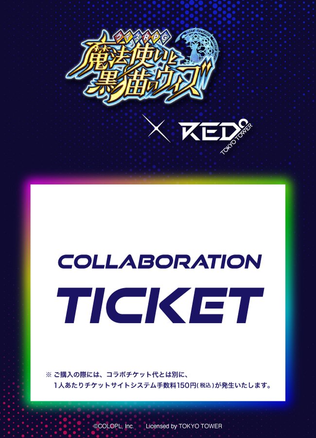 株式会社コロプラ(代表取締役社長 上席執行役員 CEO:宮本貴志、本社:東京都港区、以下「コロプラ」)は、スマートフォン向けゲーム『クイズRPG 魔法使いと黒猫のウィズ(以下、『黒猫のウィズ』)』について、2026年4月3日(金)より開始する「RED° TOKYO TOWER」とのコラボイベントの入場チケット販売を開始したことをお知らせします。