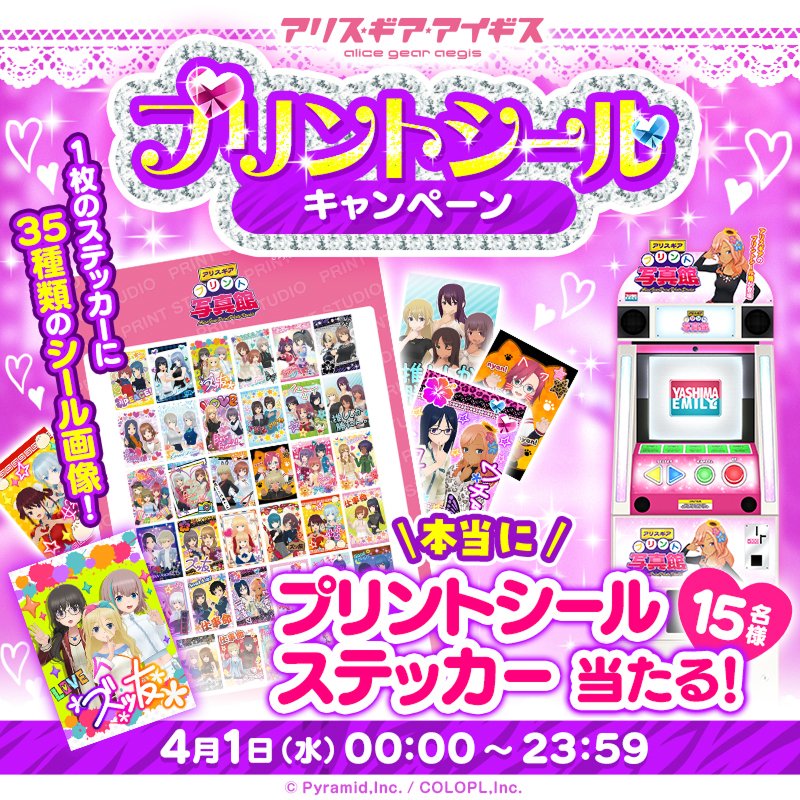 プリントシール機「アリスギアプリント写真館」の特設サイト公開を記念して、抽選でアリスギアプリントシールが当たるキャンペーンを実施いたします。『アリスギア』の公式Twitter(@colopl_alice)をフォローしたうえで、特設サイトからアクトレスのプリントシールをシェアすることで応募完了となります。